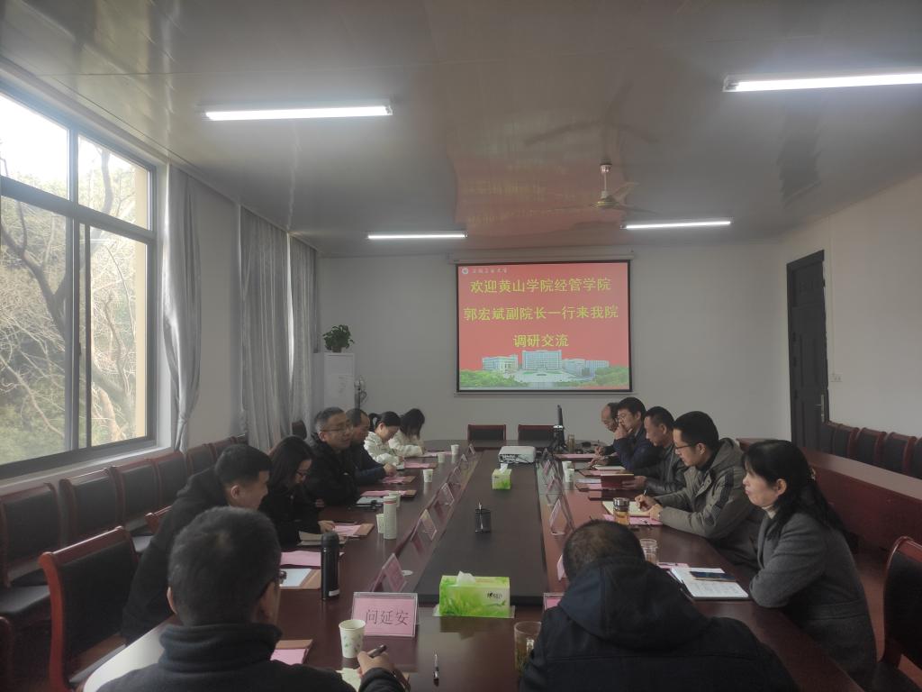 3月2日上午,黄山学院经济管理学院副经理郭宏斌一行六人来公司调研交流。学院领导班子热情接待了郭宏斌一行。学院公共事业管理专业负责人、MPA中心主任参加了交流会。