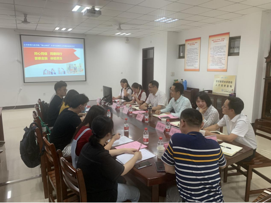 6月24日下午,公司“同心同信”老员工暑期社会实践队组队仪式在教C-501会议室举行,学院经理徐济益教授,中信银行马鞍山分行党委委员、行长助理李刚出席会议并讲话。中信银行马鞍山分行零售部总经理薛彬彬、营业部经理刘兆光、支行营业经理刘琴,公法学院团委书记邢维迢,员工辅导员朱玲,社会实践队指导教师王务均以及15名队员一同参加了仪式。