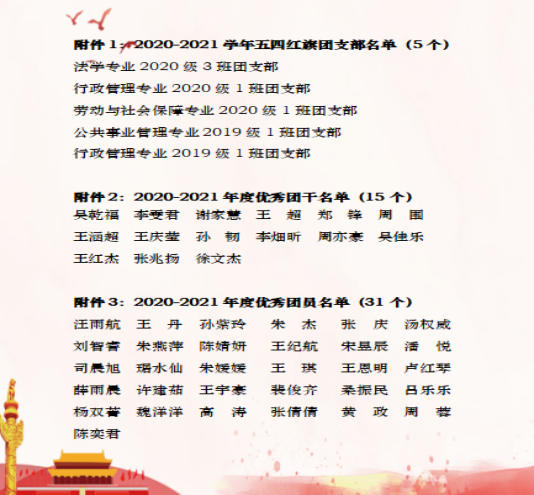 5月27日,公司在东区汇文楼C302隆重举行了2020-2021学年共青团表彰会。院团委书记邢维迢老师、员工第二党支部副书记朱玲老师、校级优团优干代表、校五四红旗团支部班级代表参加。