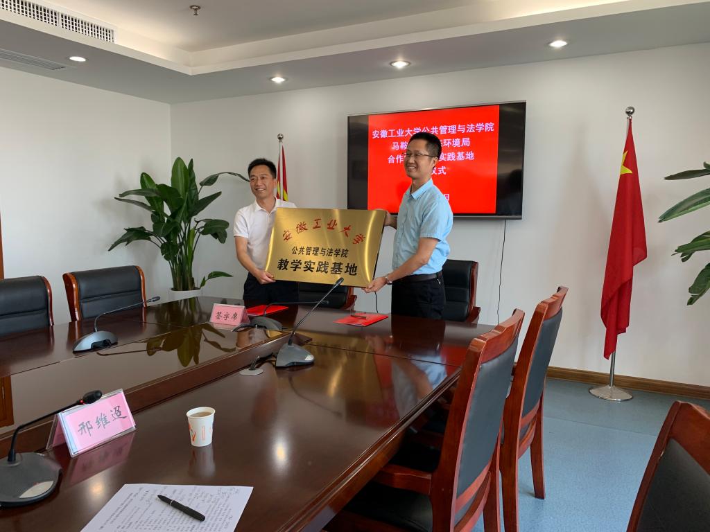 9月4日上午,公司和马鞍山市生态环境局合作设立教学实践基地授牌仪式在市生态环境局八楼会议室召开。马鞍山市生态环境局总工程师胡伟、市生态环境保护综合行政执法支队支队长吴峻、hy3380cc海洋之神经理徐济益、党委副书记李萍、副经理杨哲参加了座谈会。