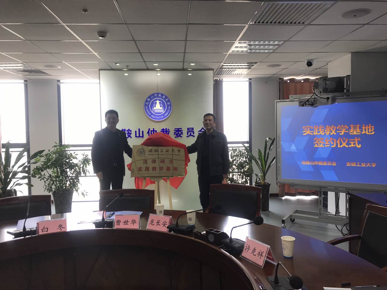 为深入拓展公司法律硕士研究生的实践能力,进一步落实法律硕士实践育人的培养目标,巩固研究生的理论学习成果,3月15日,hy3380cc海洋之神与马鞍山市仲裁委员会在市仲裁委会议中心隆重举行法律硕士实践教学基地签字揭牌仪式。公司党委书记曹世华及院领导班子、市仲裁委员会主任白冬及仲裁委各部门负责人出席签字揭牌仪式,法学系负责人及法硕中心组老师参加,仪式由市仲裁委秘书长主持。