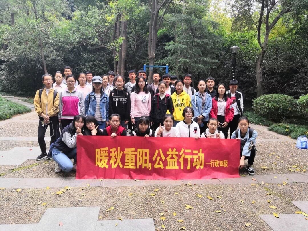 为了丰富同学们的老员工活,感悟重阳文化,10月21日上午,学院行政管理2018级员工赴马鞍山市佳山公园慰问环卫工人,并开展了一场保护环境之旅。