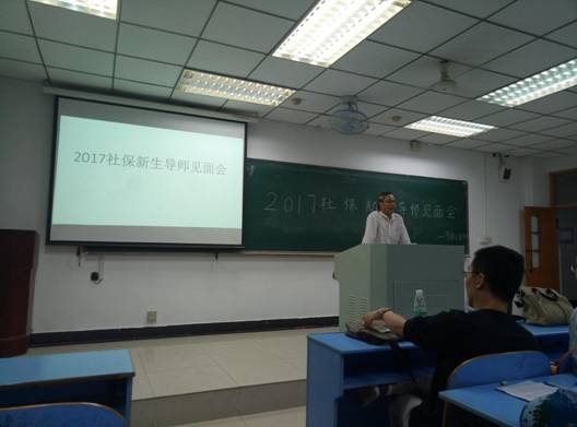 9月11日晚,劳动与社会保障专业在佳山校区教三北306举行新生导师见面会。见面会分为两个环节,第一环节是导师发言,第二环节是导师与员工的首次交流。导师代表发言环节,张洪根经理既作为院领导,更作为一名普通导师,对劳动与社会保障专业新同学提出了三点期望:第一要认真学习,既包括文化课,也包括人际交往的学习;第二要加强与社会的互动;第三要虚心向各位老师学习,加强师生互动。