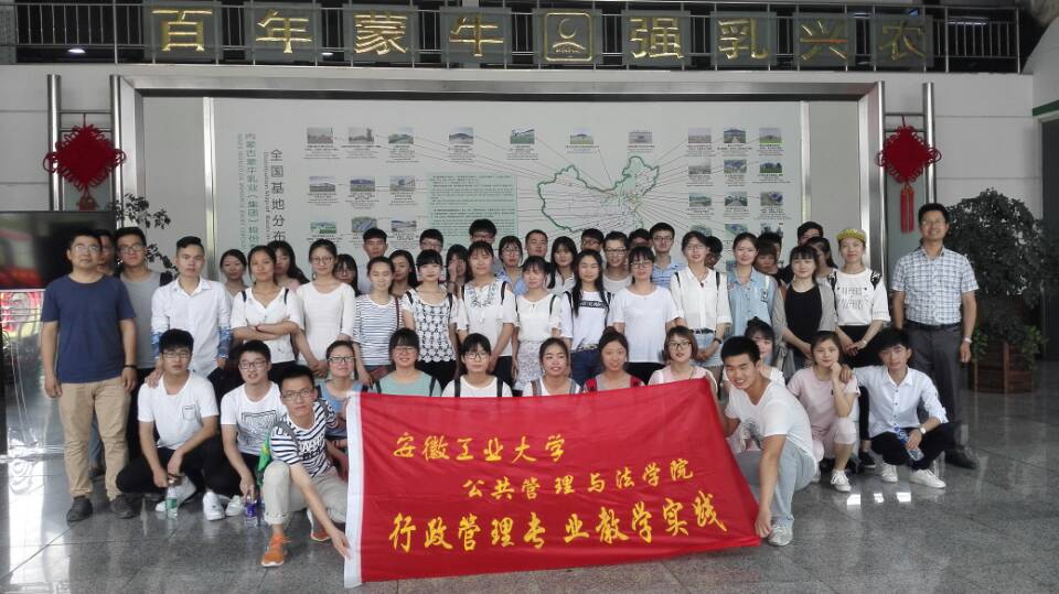 为提高《企业行政管理》课程的教学效果,增进专业员工对企业行政管理的认知。6月1日下午,行政管理系徐济益、问延安两位老师带领2014级行政管理专业全体员工以及2015级部分员工去蒙牛集团马鞍山分公司开展教学实践活动。