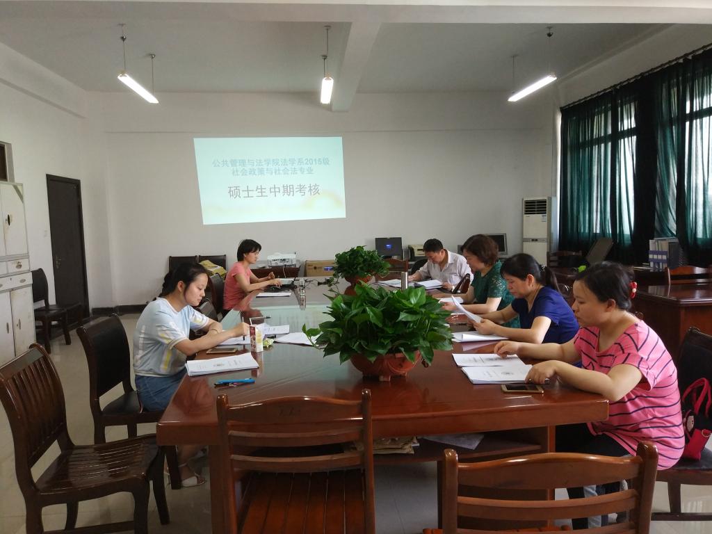 为推进2018届社会政策与社会法专业硕士学位论文顺利完成,公司于5月22日在法学系办公室开展了毕业论文中期检查工作。李欣副教授担任中期考核组组长,法学系戚枝淬、邓可祝、孔东菊三位副教授也参加了此次检查工作。