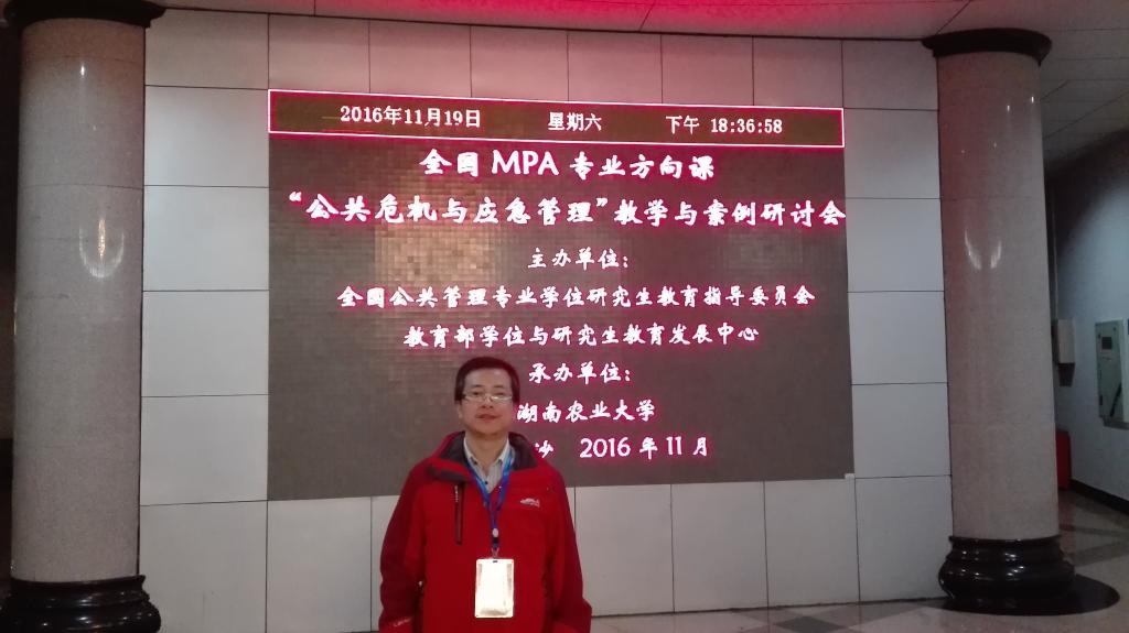 2016年11月19-20日,由教育部学位与研究生教育发展中心、全国公共管理专业学位研究生教育指导委员会联合主办,湖南农业大学承办的2016年全国MPA专业方向课“公共危机与应急管理”教学与案例研讨会顺利举行,来自全国知名高校公共管理学界100多名专家参会,公司董少林老师参加会议并同与会代表进行了广泛且深入的交流。