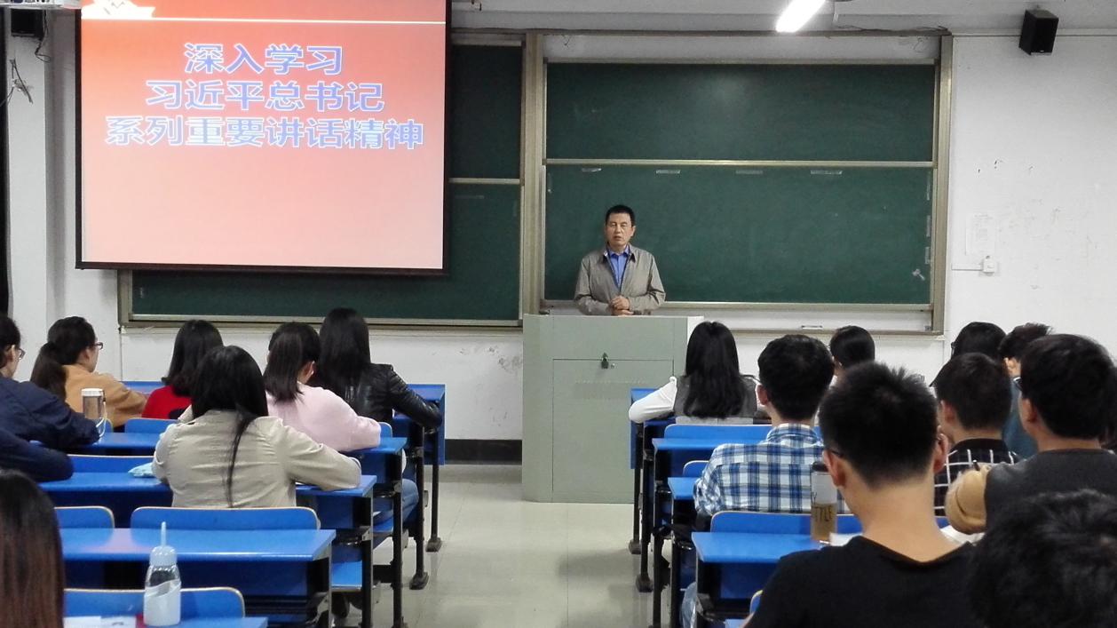 下午,公司党委书记曹世华在教D309为学院全体员工党员做了关于《深入学习习近平总书记系列重要讲话精神》的专题讲座。